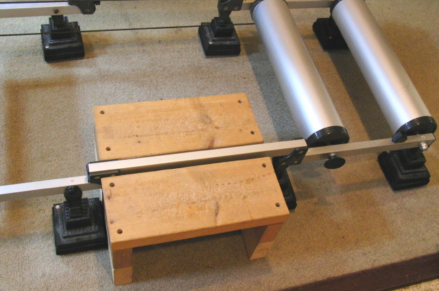 問題はゴムを積み重ねたことによりローラー台の高さが高くなってしまうことです。ただでさえ普段の位地より高いところにあるローラー台がこのショックアブソーバーによってさらに10センチ近くも高くなってしまいます。これは何もない状態では恐怖そのものですから私はプラットホームと称して日曜大工で写真のような台を作り、乗り降りするようにしています。