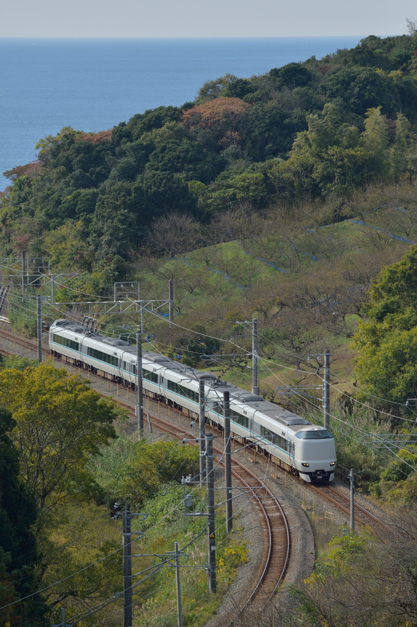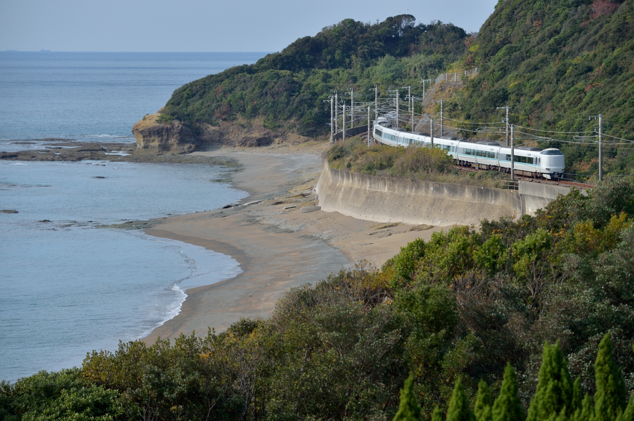 続いて287系くろしおです。確かに有名な撮影ポイントで簡単に絵になる写真が撮れるのですが、よく見ると車両の横に電線が写るんですね。
