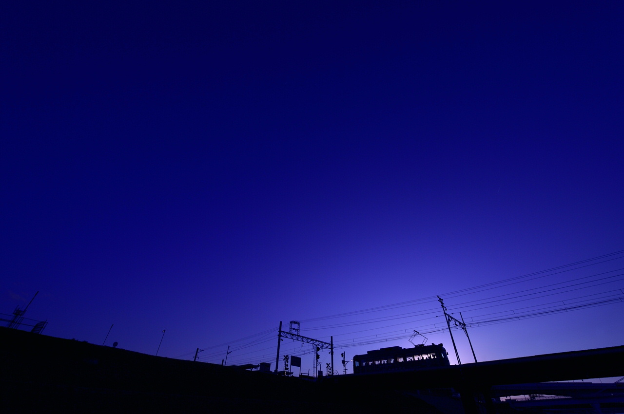 長い間、モ161形に逢ってなくて、どうしても逢いたくて夕方の大和川橋梁に向かいました。電球モードで待っていたらすぐにモ351形がやってきてシルエット姿を見せてくれました。