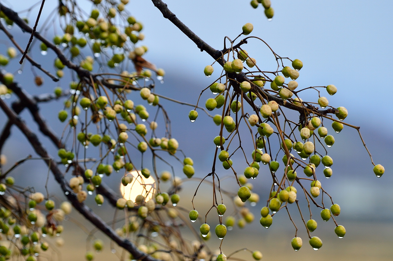 そのひとつとなりの市辺駅まで来たところで写真のような実を付けた大きな木(センダン?)が目に入りました。冬の午後、ただでさえ日が短いというのに、雨中の撮影はあっという間に光量が減ってしまい、結局は絞りきれないこのカットで撮影終了。準備はもっとテキパキやらないとだめだな。