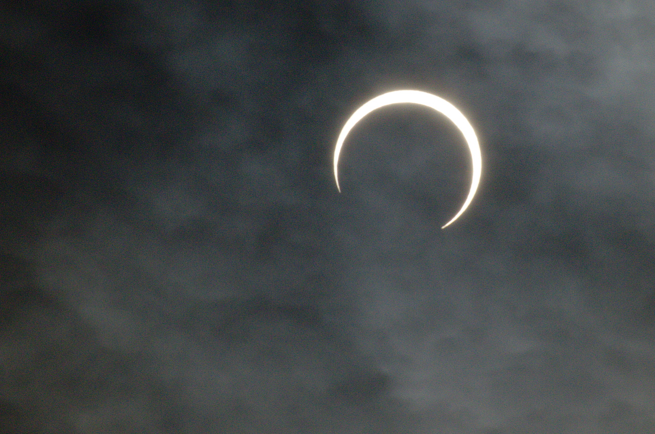 金環食の前後は辺りが薄暗くなり、雰囲気を盛り上げてくれます。金環食の瞬間はたった2分少々。驚くのはあんなに大きな物体があんなに遠くであんなにも速く動いているんだという事実です。