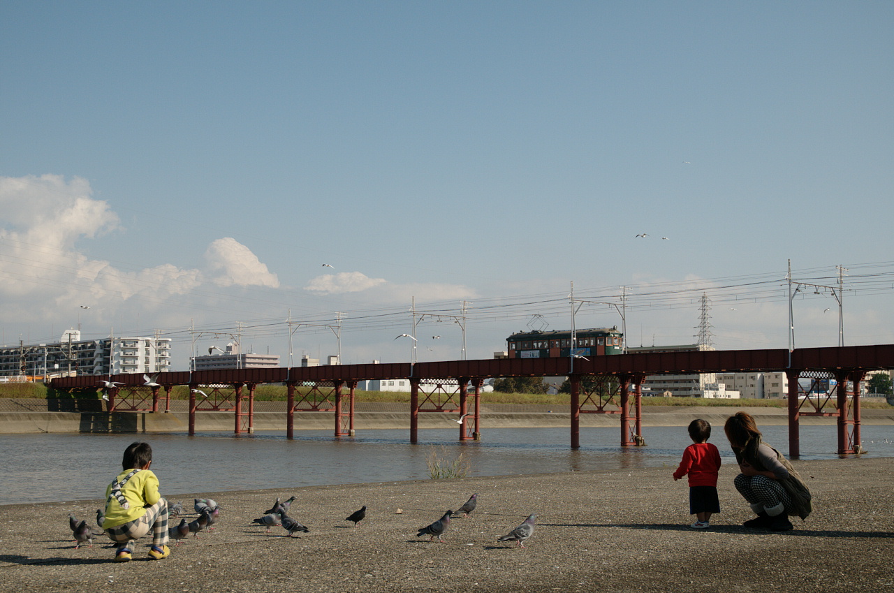 「え~っ何で~!?」と振り返ったら、鳥に餌をやりに来た家族連れが堤防下に下りてきて、子供達が鳥を追いかけた為と判明。残ったのはハトだけでした。