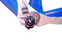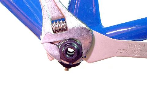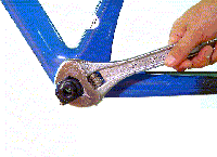 | 右側のナットを専用工具を使用して固定します。右側は逆ネジになっているので注意が必要です。 |