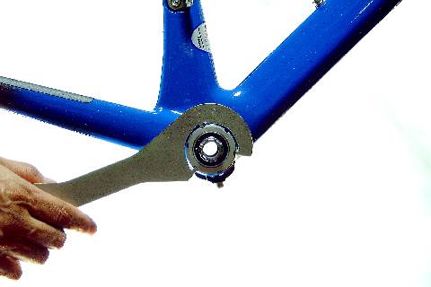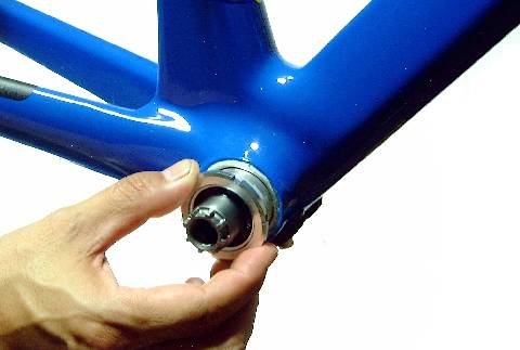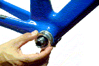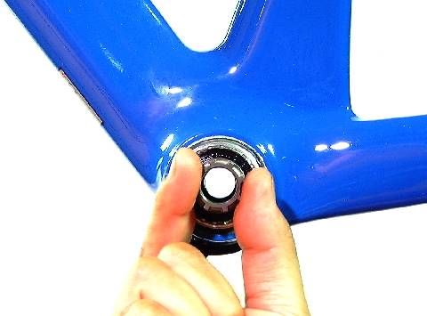 | 右側からボトムブラケットを挿入し、手で止まるところまで回します。 |
