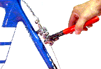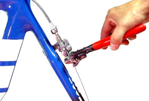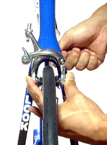 ブレーキユニットの取り付けは両方のシューを手で挟み、リムに押し当てた状態で行います。