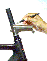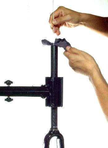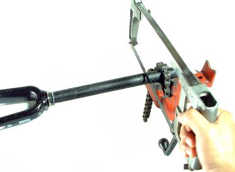 切断後、削りカスなどを除去しやすいようフォークコラムにウエスを詰め込んでおくと良いでしょう。