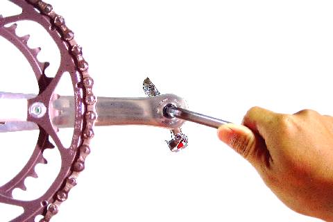 8mmのアーレンキーで固定します。ペダルは右側が逆ネジになっているので注意が必要です。