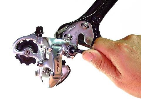 リアディレイラーはエンドの取付穴にアーレンキーで固定します。調整はメンテナンスの項を参照して下さい。