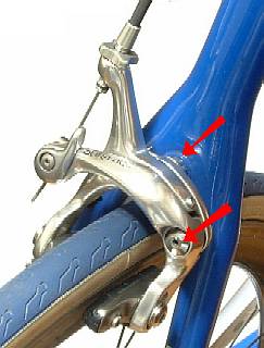 支軸が2つあるタイプのブレーキ。ロードは全てこのタイプである。